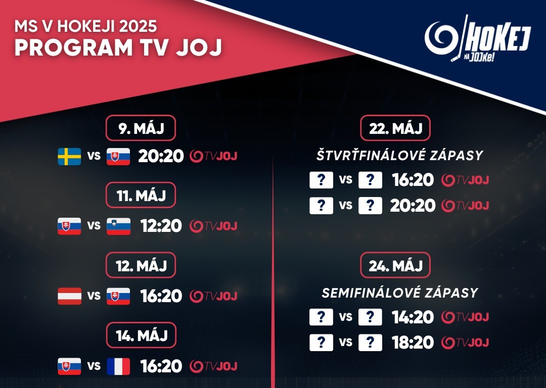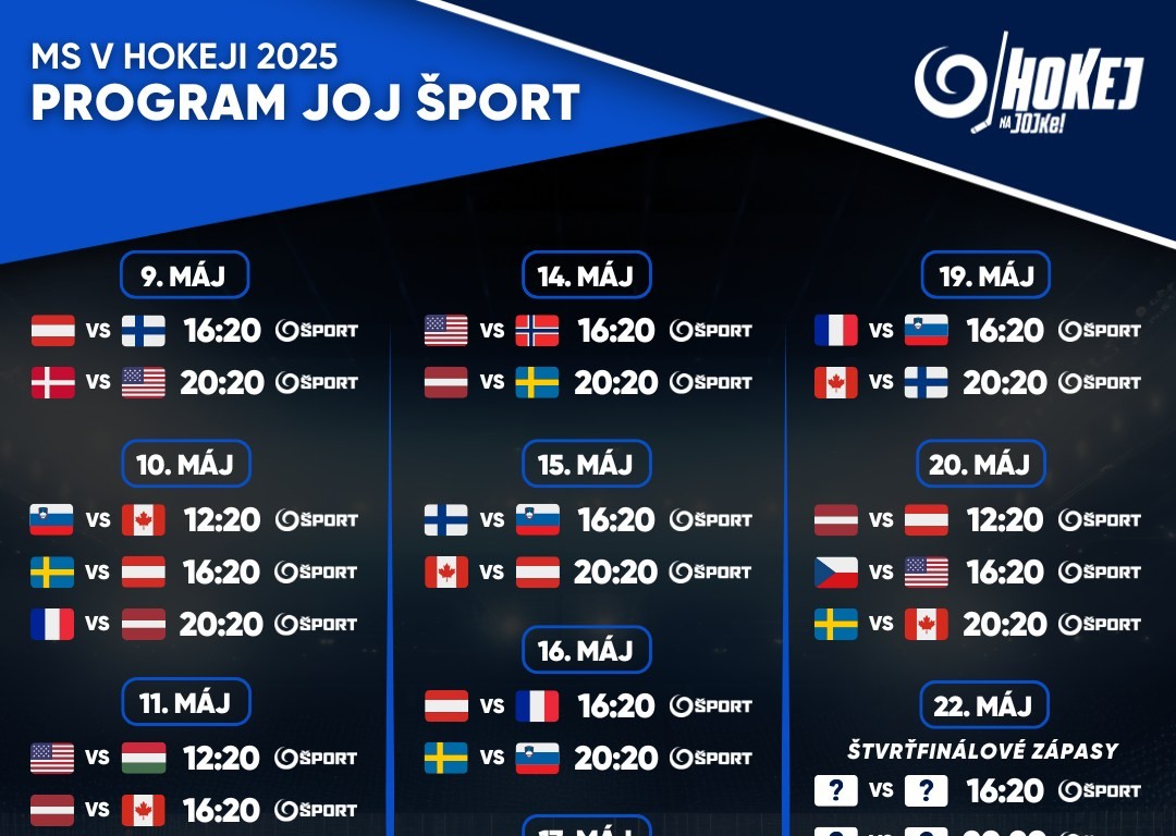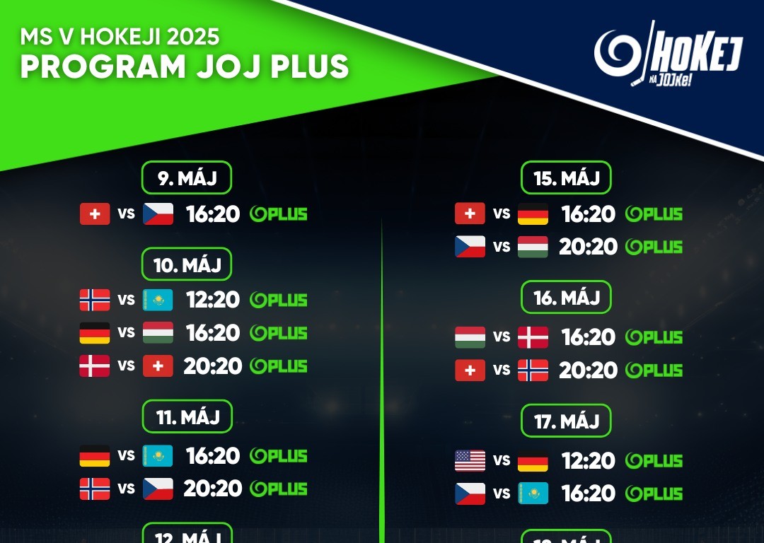 Všetky zápasy z MS v hokeji 2025 nájdete úplne zadarmo na JOJ Play v sekcii MS 2025!