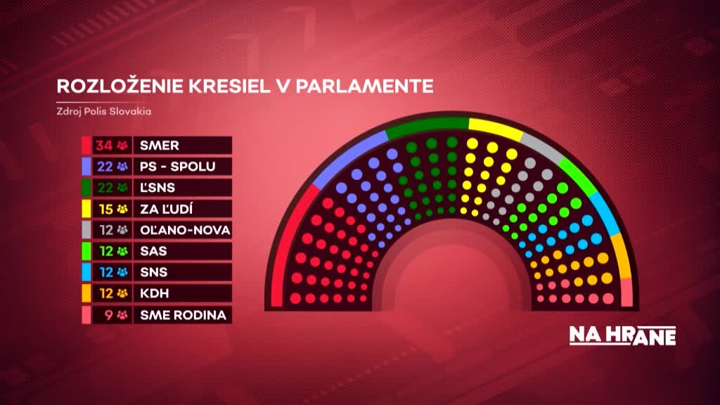 V parlamente by získala strana Smer-SD 34 kresiel, Koalícia PS/Spolu a ĽSNS by mali po 22 poslancov a strana Za ľudí by mala 15 zástupcov. Strany OĽANO, SaS, SNS a KDH by získali 12 mandátov a 9 stoličiek by sa ušlo hnutiu Sme rodina - Boris Kollár.